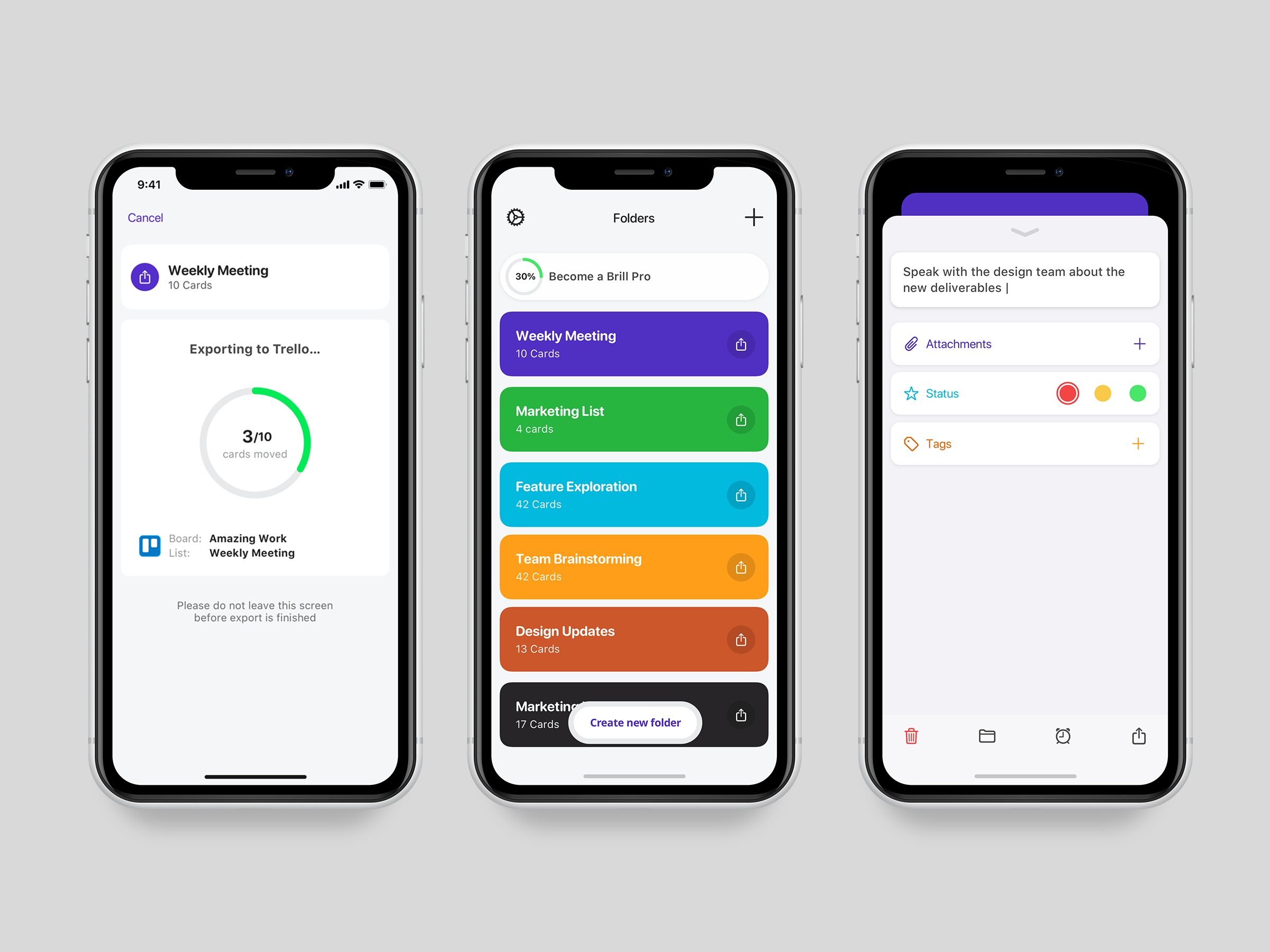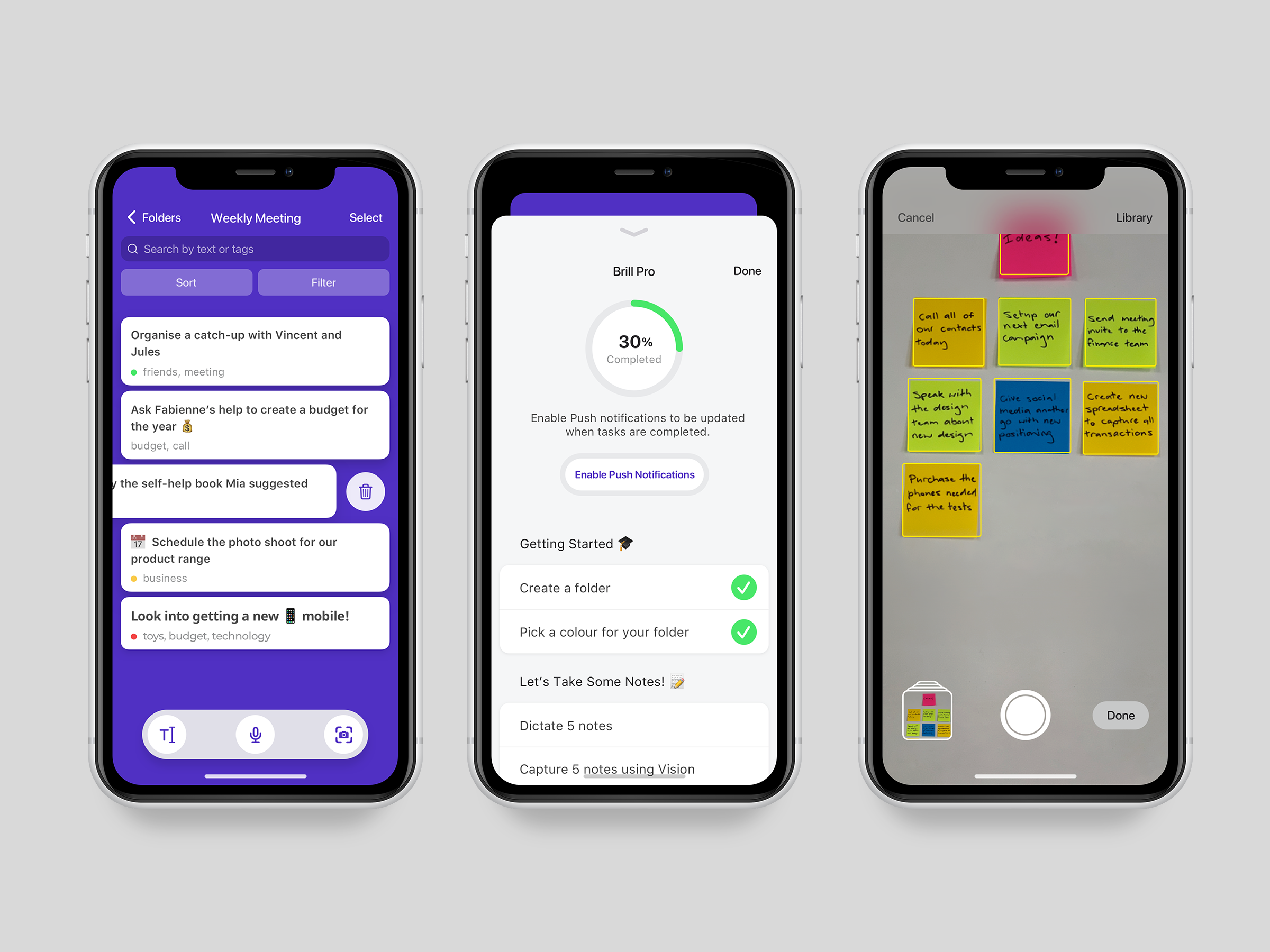 Brill was a 0→1 mobile product, built to capture, structure and share ideas in seconds. The focus was on speed, simplicity and real-world workflows.